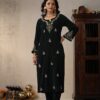 Pantalms Crafts Cotton Aari Embroidered Solid Women’s 2 PC Short Kurta Set – Black