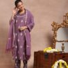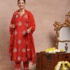 Pantalms Crafts Cotton Aari Embroidered Solid Women’s 3 PC Long Kurta Set – Mustard