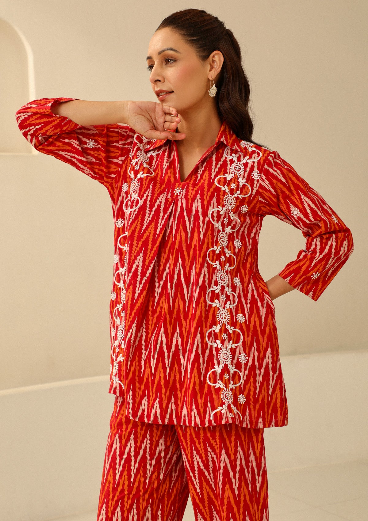 Cotton Printed Women’s 2 PC Co-ord Set – Red