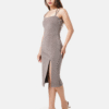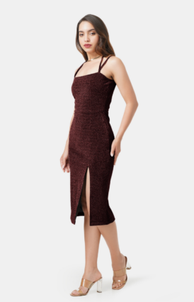 In Our Streamlined And Understated Party Dress. A Modern And Elegant Appearance Is Produced By The Shimmers And Modest Design. The Thigh-High Slit And Figure-Hugging Silhouette Scream Casual-Cool Yet A Flirty Slay. This Dress Guarantees That You’Ll Be The Pinnacle Of Classic Style On Any Occasion, Whether It’S A Cocktail Party Or A Formal Gathering.