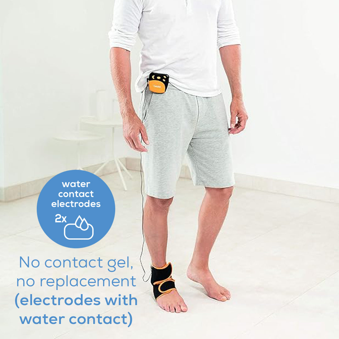 The TENS device can be used for pain on the ankle and provides pain relief with 4 pre-programmed applications. Application is comfortable thanks to the body-fitting, ergonomic shape.