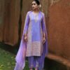 Chanderi Kamdaani Embroidered Solid Women’s 4 PC Long Kurta Set – Pink