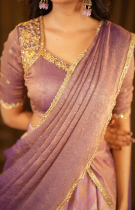 Lavender Silk Lehenga Choli with Zari Weaving & Elegant Dupatta