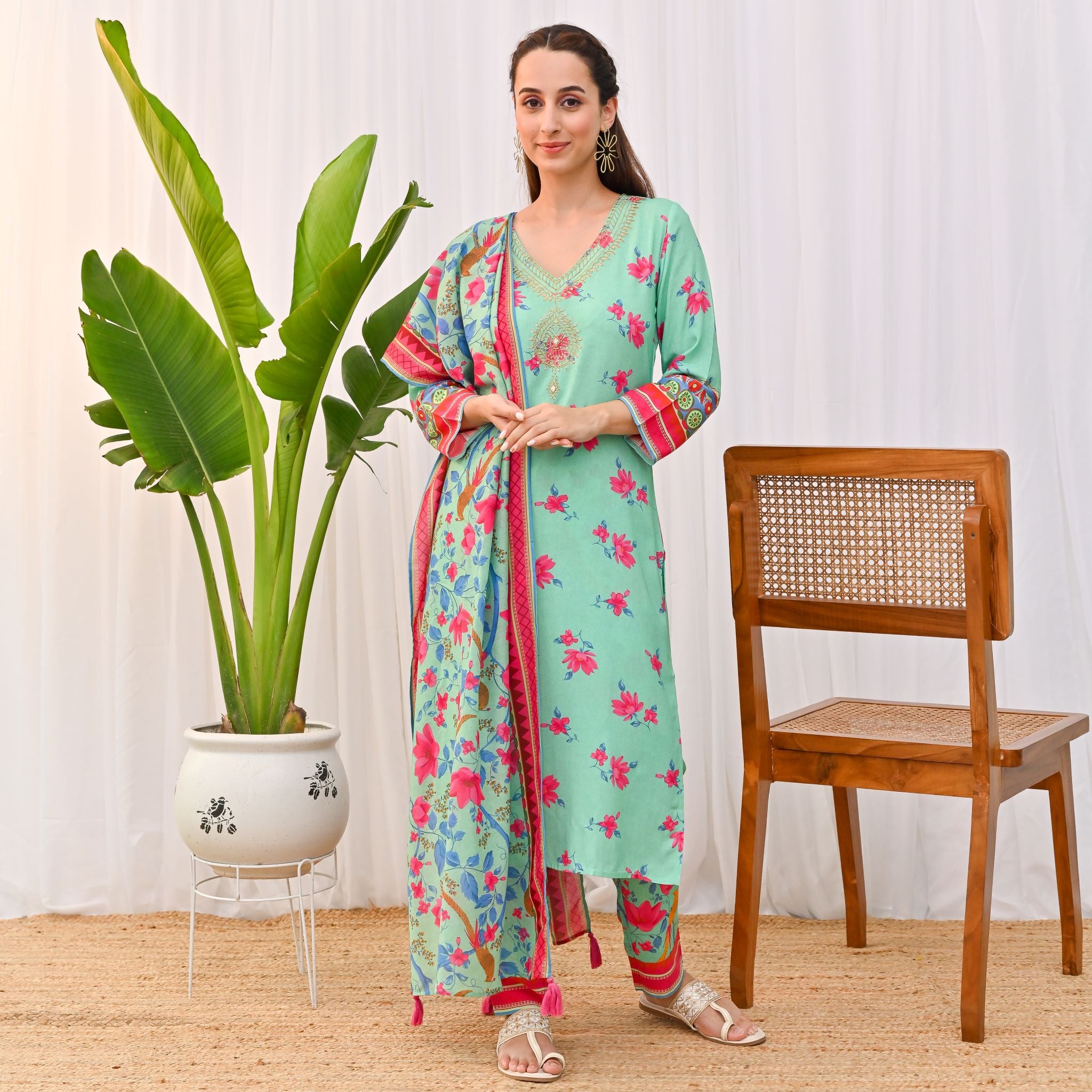 Be the first to review “Mint Green Lotus Printed Salwar Kurta Set with Dupatta & Neck Embroidery Detail” Cancel reply