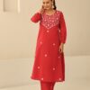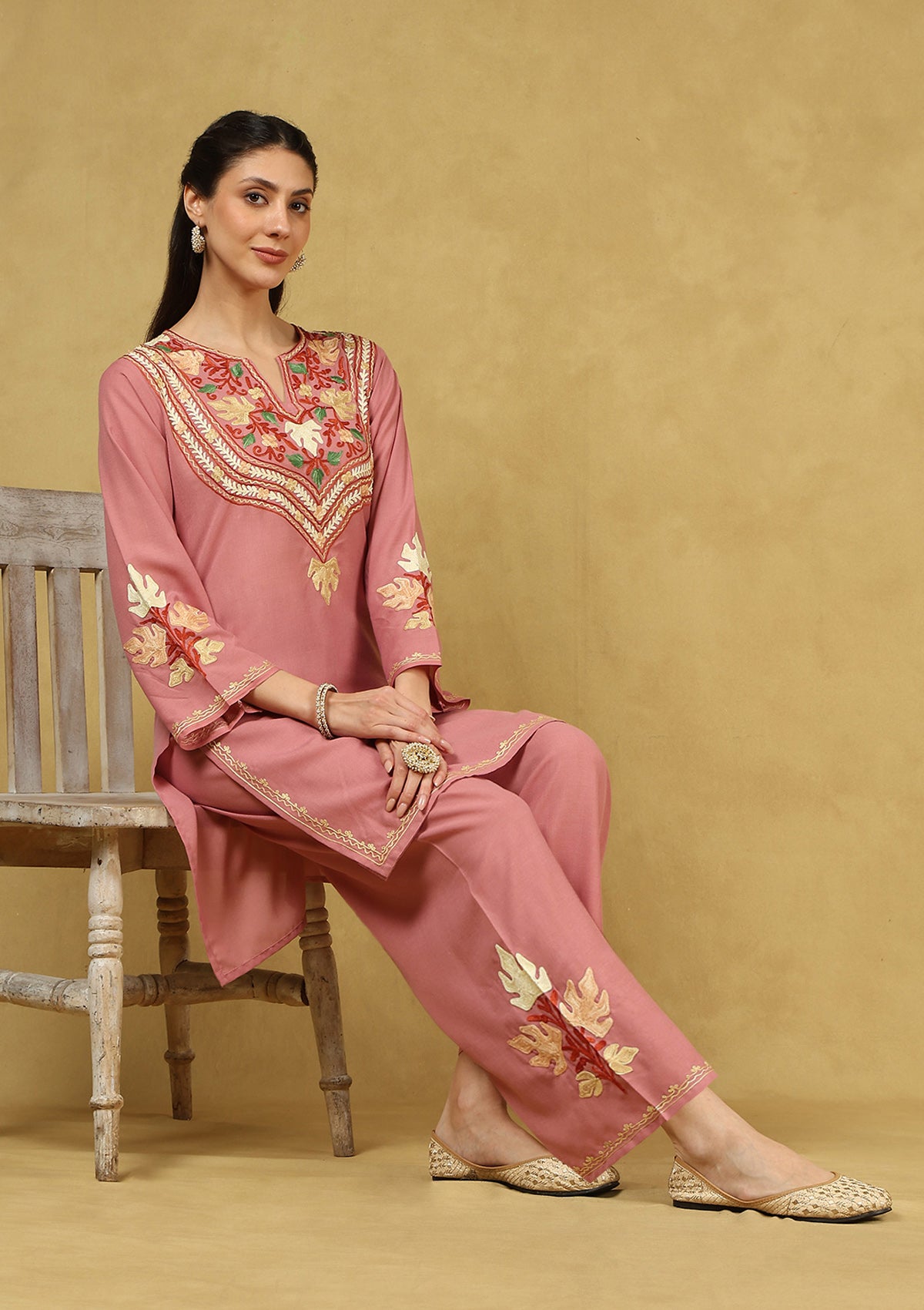 Pantalms Crafts Cotton Aari Embroidered Solid Women’s 2 PC Short Kurta Set – Pink