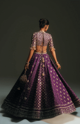 Royal Amethyst Embroidered Lehenga Set with Zari Detailing