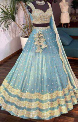 Sky blue color Designer Sequence Embroidery work Lehenga choli